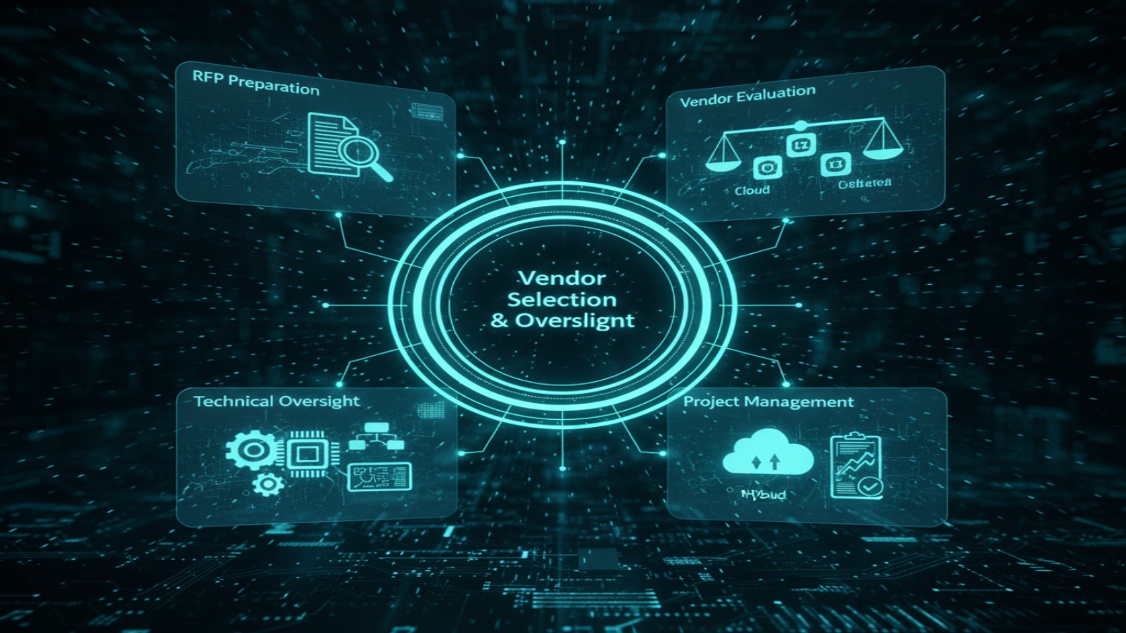 تهیه RFP، ارزیابی فروشندگان، و نظارت فنی و مدیریتی بر اجرای پروژه‌ها.