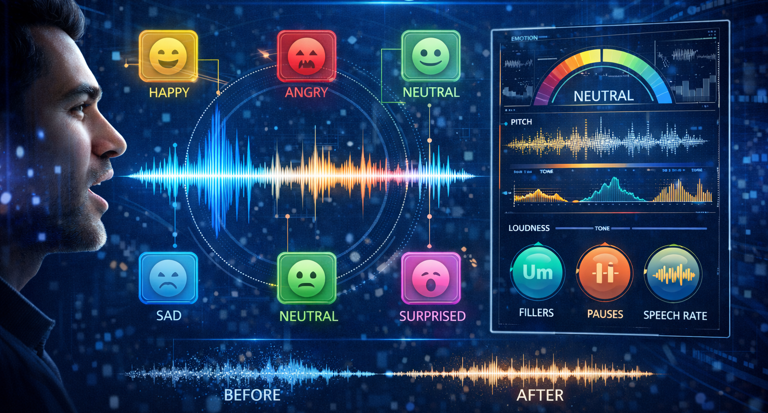 تشخیص احساس و پارامترهای صوتی (Emotion & Paralinguistic Analysis)