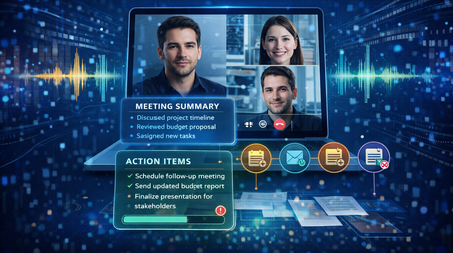 خلاصه‌سازی مکالمات و تولید صورت‌جلسه (Meeting Summarization & Action Items)