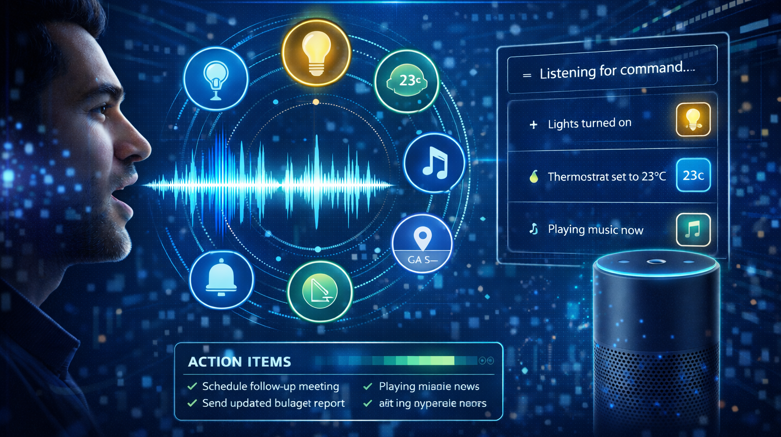فرمان‌های صوتی و کنترل دستگاه‌ها (Voice Commands & Control)