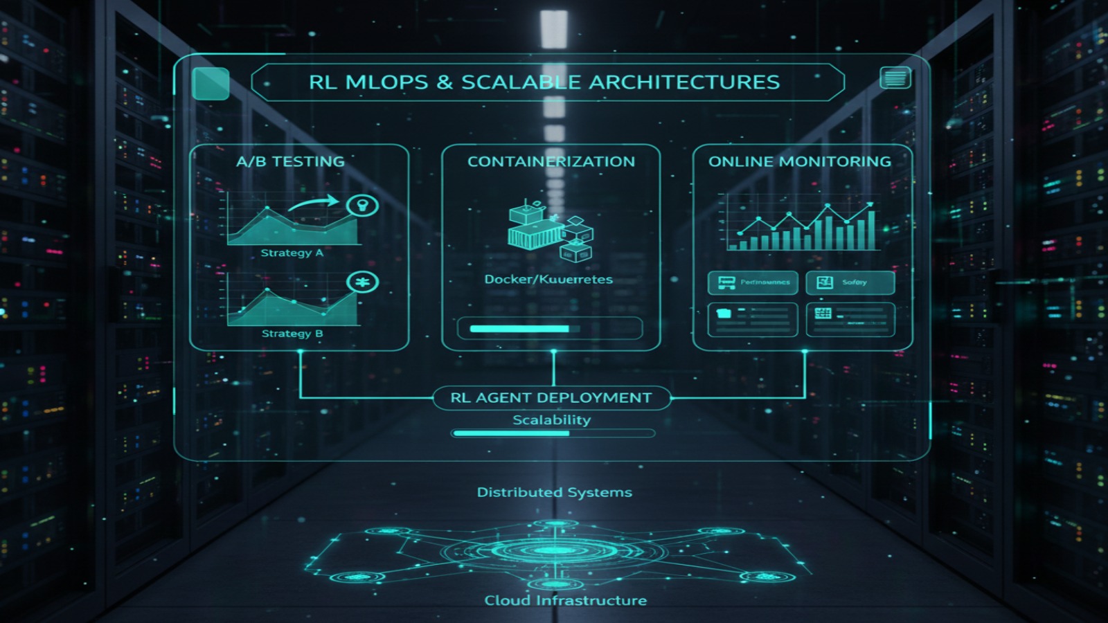 استقرار عامل‌ها با معماری‌های مقیاس‌پذیر و MLOps مخصوص RL (تست A/B، کانتینریزه‌سازی، پایش آنلاین).