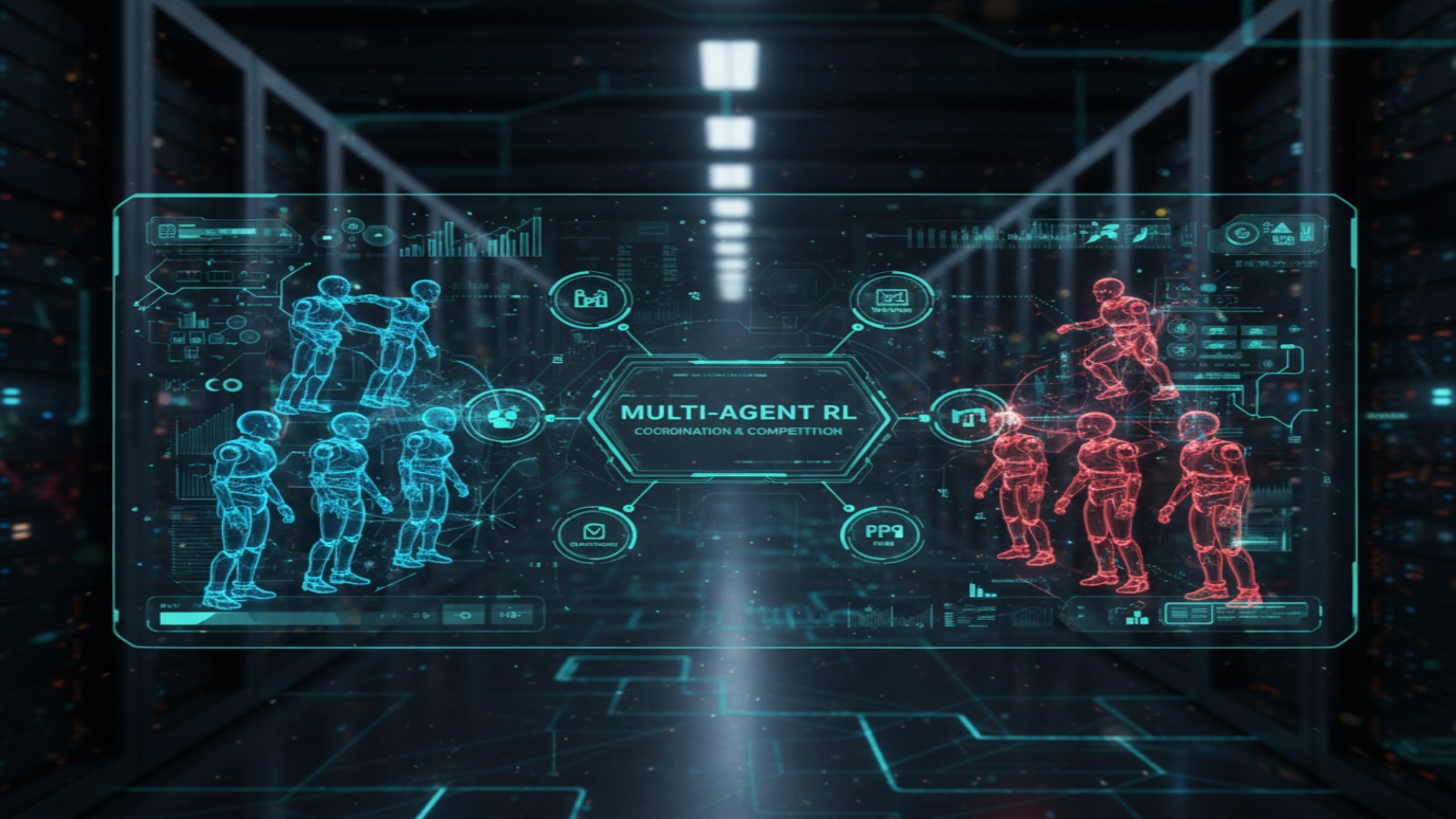 آموزش چندعامله (Multi-Agent RL) برای مسائل هماهنگی و رقابت در سامانه‌های توزیع‌شده.