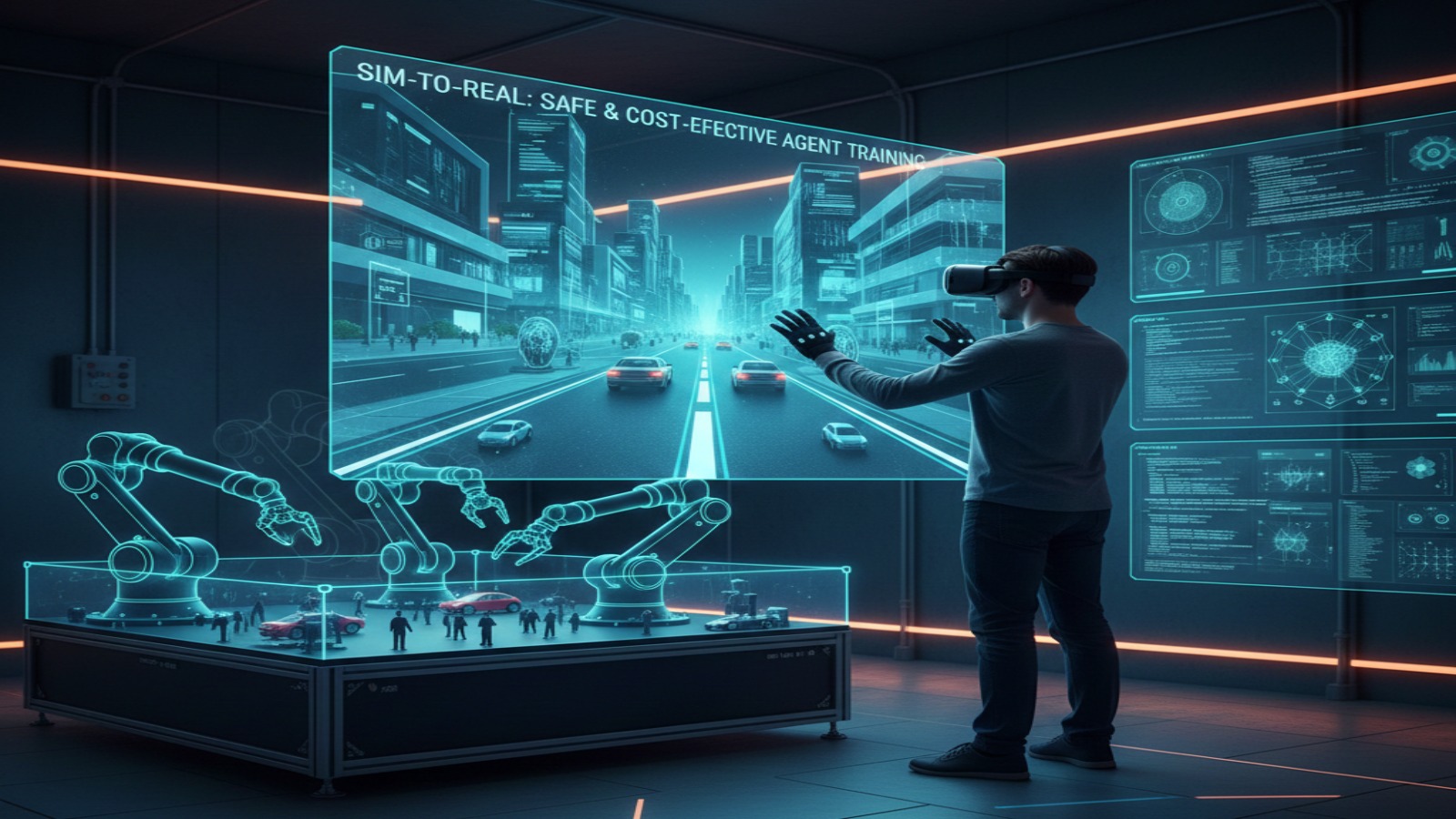 طراحی و پیاده‌سازی محیط‌های شبیه‌سازی (Simulators) و شبیه‌سازی «از شبیه به واقع» (Sim-to-Real) برای آموزش امن و کم‌هزینه عامل‌ها.